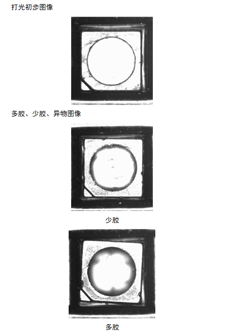 檢測(cè)條件必須多膠少膠工件的圖像所成圓有明顯的區(qū)別。